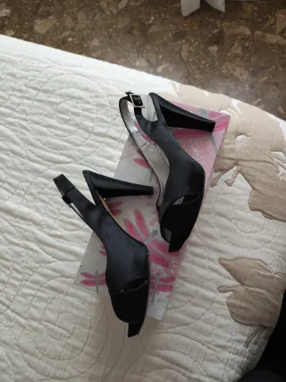 Elegantes zapatos destalonados de la marca Mayfran. - Diseño cruzado en la pala. - Tira ajustable al tobillo. - Tacón fino.
