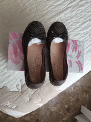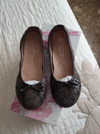 Elegantes sabrinas de la marca Dancing en color marrón. - Diseño con textura de piel de serpiente. - Adorno de lazo en la puntera. - Fabricadas en España.
