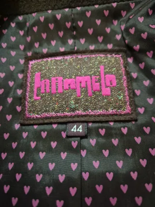 Chaqueta de la marca Caramelo en color marrón. Diseño moderno y versátil. Como nueva (solo puesta en un par de ocasiones) - Cierre de cremallera frontal. - Dos bolsillos delanteros con solapa. - Bolsillos con cremallera en las mangas. - Cuello camisero camisero Tejido: - 70% lana - 20% poliamida - 10% cashemer Forro con dibujo muy bonito ( más de lo que se aprecia en las fotos).
