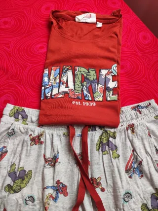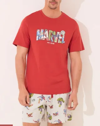 Conjunto de pijama para hombre con estampado de Marvel. - Camiseta de manga corta. - Pantalón corto con estampado de superhéroes. - Diseño inspirado en el universo Marvel.