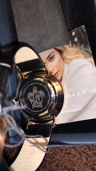 Reloj de pulsera de la marca Amelia Parker, con un diseño elegante y moderno. Está completamente nuevo, sin usar. - Correa de cuero negra. - Detalles en tono dorado. - Resistente al agua 3 ATM. - Movimiento de cuarzo japonés.