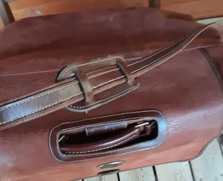 Elegante bolso de viaje de estilo vintage, perfecto para escapadas. - Confeccionado en cuero de alta calidad. - Diseño clásico con detalles de costura. - Asa de mano y correa ajustable.
