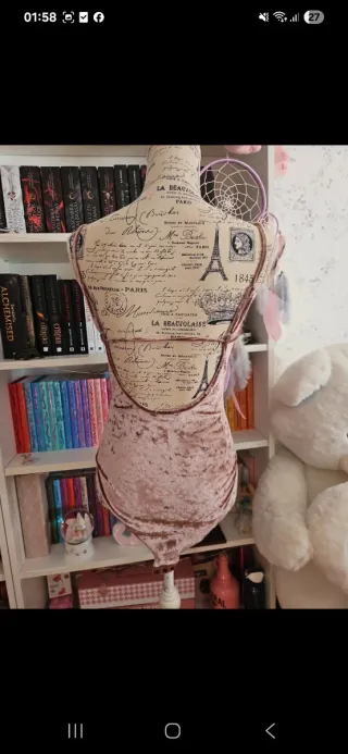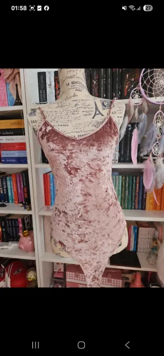 Body de terciopelo con tirantes finos. - Material: Terciopelo. - Color: Rosa. - Talla: M.