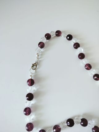 Bonito collar (nuevo) compuesto por cuentas de amatista natural y cuentas de cristal tallado de roca vintage. Cierre de metal. Medidas: 49.5cm largo (no ajustable)