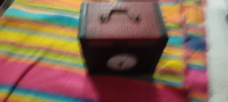Elegante caja joyero con un detalle de reloj. - Acabado exterior en piel negra. - Detalle superior en piel con textura de reptil en color rojo. - Cierre decorativo metálico.