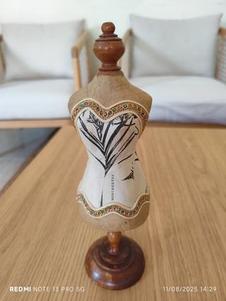 Preciosa figura de maniquí, ideal para decorar o exponer collares. Es pequeña y está fabricada en madera y papel. - Diseño elegante y delicado. - Perfecto para la decoración del hogar. - Material: madera y tela.
