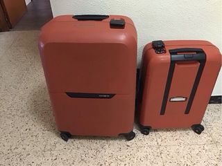Set de dos maletas de viaje Samsonite Magnum. - Maleta grande de 69 cm. - Maleta mediana de 55 cm. - Color naranja vibrante. - Diseño moderno y resistente.
