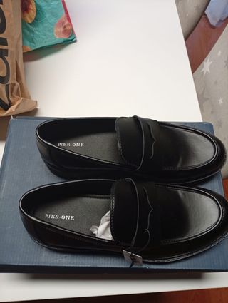 Mocasines clásicos de la marca Pier One. - Diseño elegante y atemporal. - Acabado en color negro. - Detalle de antifaz en la pala.