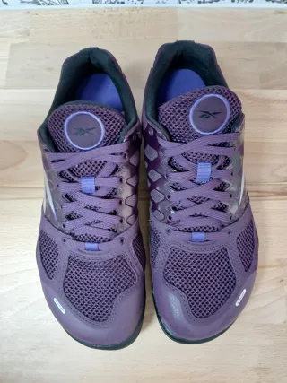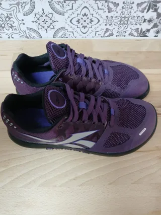 Zapatillas deportivas Reebok en color morado. -Logo plateado -Ideales para crossfit - Diseño transpirable con malla. - Cierre de cordones. - Detalle de logo en la lengüeta. - 26'5 cm/ 7UK /9'5USA -Sin uso me van justas