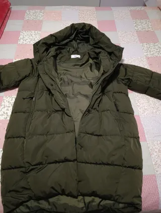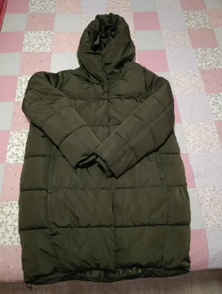 Anorak largo con capucha para mujer. Diseño acolchado y moderno. - Cierre de cremallera. - Bolsillos laterales. - Capucha integrada. - Talla 40, pero es grande 63cm de axila a axila y 87cm de largo