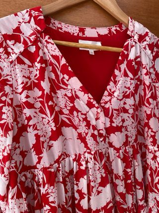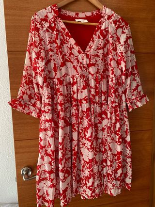 Vestido de corte holgado con un bonito estampado floral. - Diseño con escote en V. - Mangas cortas con volante. - Tejido ligero y vaporoso.