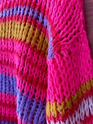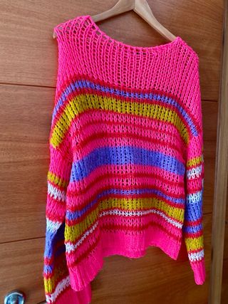 Jersey de punto con un llamativo diseño de rayas multicolor y acabado flúor. - Diseño de rayas horizontales. - Tejido de punto abierto. - Cuello redondo.