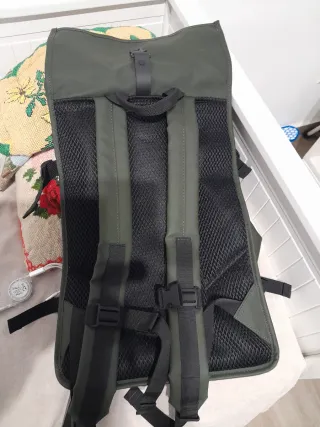 Mochila de la marca Rains, con un diseño moderno y funcional. - Material impermeable. - Cierre enrollable. - Bolsillo frontal con cremallera. - Correas ajustables.