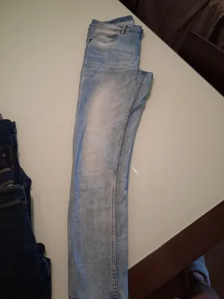 Varios pares de tejanos de diferentes tonos de azul. - Varios estilos y lavados. - Material vaquero resistente. Usados. Es un pack, no se vende por separado