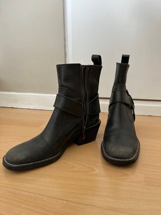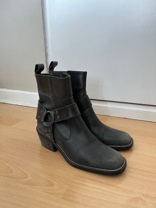 Botas Zara negras estilo motero con hebilla