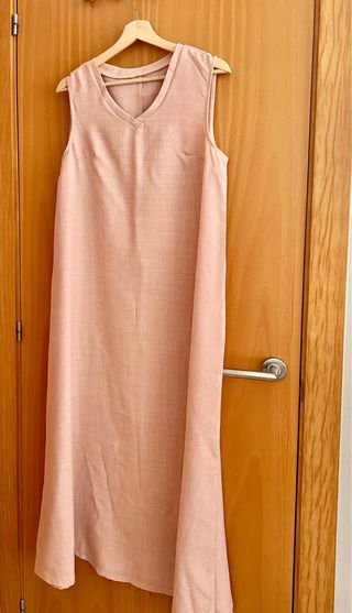 Vestido Largo. Cuello en V. Talla L. Rosa
