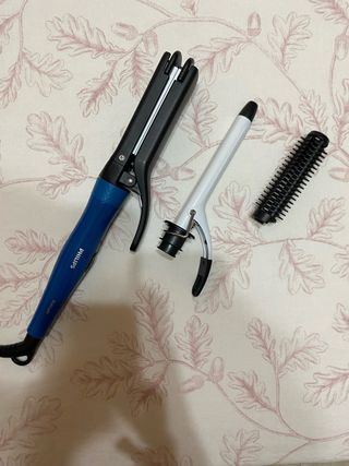 Vendo esta plancha de pelo Philips Multistyler 4 en 1. Está en buen estado y lista para usar. - Incluye placas de planchado y para efecto trencillas, rizador y peine. - Diseño plegable y compacto. - Perfecta para crear diferentes estilos.
