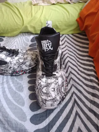 Zapatillas deportivas con un diseño llamativo y moderno. - Estampado detallado en blanco y negro. - Cierre con cordones negros. - Detalle de kanji en la lengüeta.