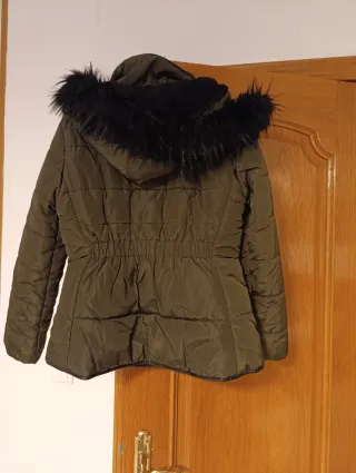 Abrigo acolchado con capucha y detalles de pelo sintético. - Diseño acolchado con pespuntes. - Cintura ajustable con cordón. - Capucha con pelo sintético. - Cierre de cremallera. Sin uso, puesto en un par de ocasiones, sin roces, mangas, botones, cremallera, todo en perfecto estado.El gorro es muy bonito, con pelo, pero se puede quitar. Se puede ajustar en la cintura. Está nuevo,lo vendo porque me queda estrecho. Aunque es talla 42, da más bien como 38-40. Su precio original fue de 80€. #elcorteingles #formulajoven #chaqueta #plumas #invierno