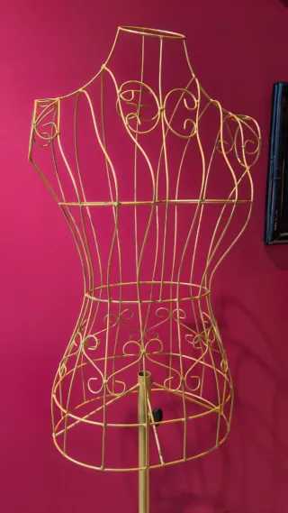 Maniquí metálico, con un elegante acabado dorado. Su diseño abierto lo hace ideal para exhibir prendas. - Estructura de metal. - Base de trípode. - Altura ajustable. Dispongo de 7 unidades