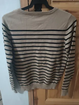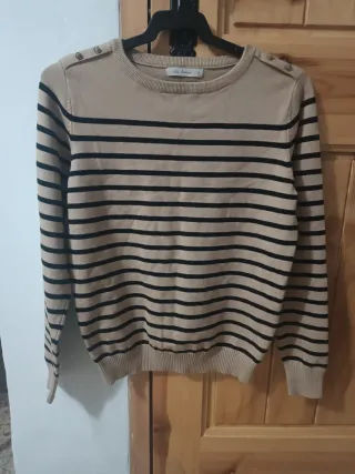 Jersey de punto con diseño de rayas horizontales. Presenta detalles de botones dorados en los hombros. - Diseño a rayas. - Botones decorativos en hombros.