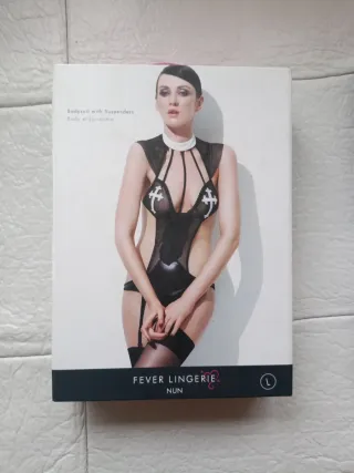 2 Modelos diferentes elije el tuyo . Body de monja con ligas, ideal para disfraces o ocasiones especiales. - Diseño con cruces. - Tirantes ajustables. - Incluye ligas. - Material de encaje y polipiel.