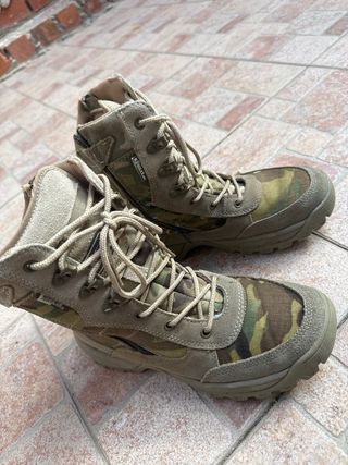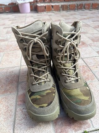 Botas de estilo militar con diseño camuflado. - Cierre de cordones. - Caña alta para mayor sujeción. - Suela de goma resistente.