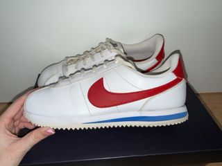 Clásicas zapatillas Nike Cortez con un diseño icónico. - Combinación de blanco y rojo. - Suela de goma. - Cierre de cordones.