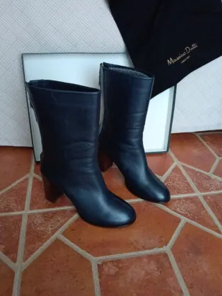 Elegantes botas de caña media de Massimo Dutti. - Material exterior de piel. - Tacón de bloque de madera. - Cierre de cremallera lateral.
