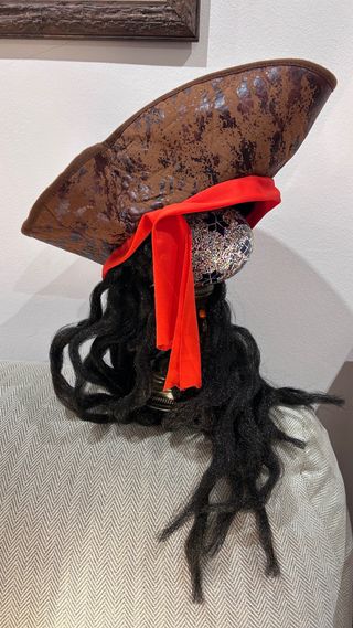 Este gorro de pirata está inspirado en el icónico personaje Jack Sparrow. Es un accesorio llamativo y original. - Diseño de gorro de pirata. - Detalles en marrón y rojo. - Los dos gorros 12€. Ideal para parejas