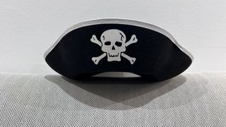 Sombrero de pirata con diseño de calavera y tibias cruzadas. Ideal para disfraces. - Diseño de calavera y tibias cruzadas. - Borde blanco.