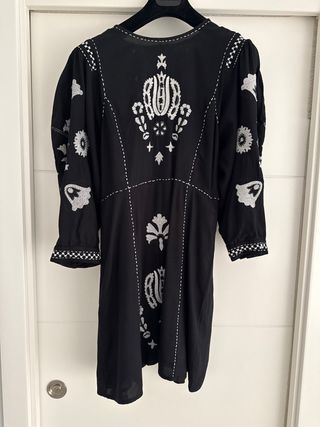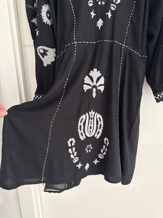 Vestido negro bordado mujer