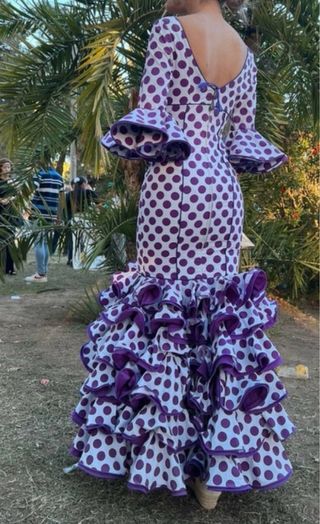 Traje de flamenca blanco y morado Talla 36