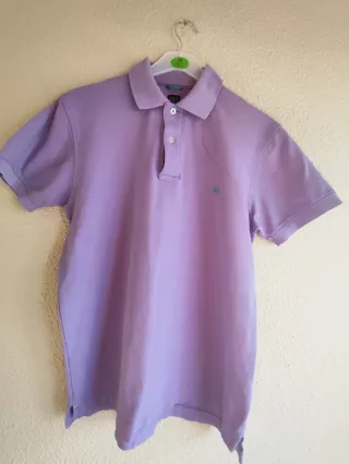 Pack de tres polos de color morado. - Talla M (equivalente a 38-40 / 48-50). - Cuello tipo polo con botones. - Pequeño logo bordado en el pecho.