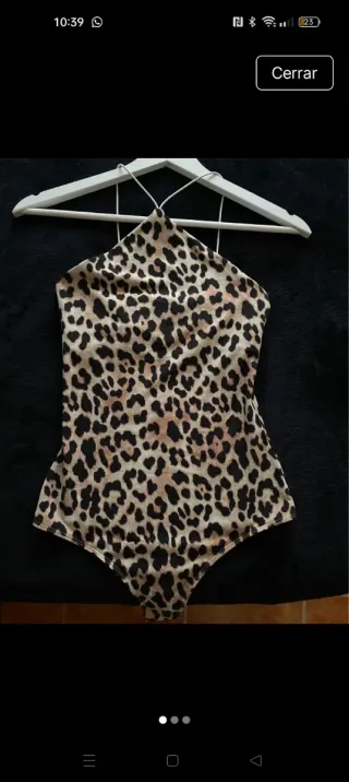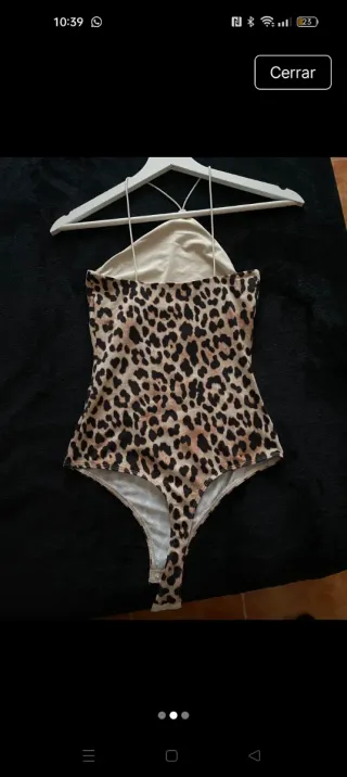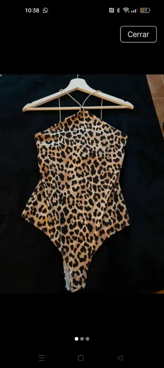 Body de mujer con estampado de leopardo. - Diseño de tirantes. - Escote halter. - Corte brasileño.