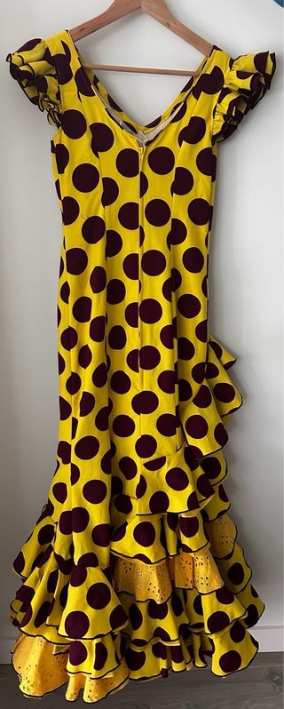 Vestido Flamenca Lunares Amarillo y buganvilla tal