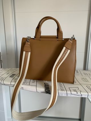 Bolso de piel en tono marrón, con un diseño elegante y práctico. - Bandolera ajustable y extraíble. - Asas superiores de piel. - Cierre superior.