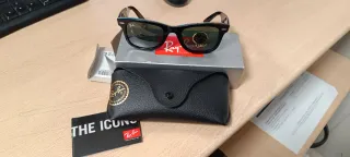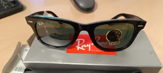 Gafas de sol Ray-Ban modelo ORB 2140. - Montura negra con detalles multicolor. - Incluye funda protectora negra. - Talla 50