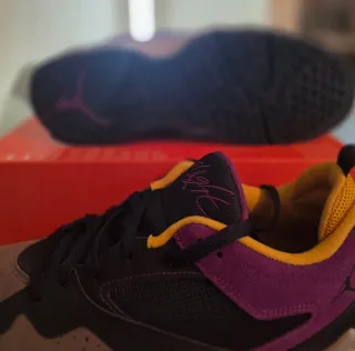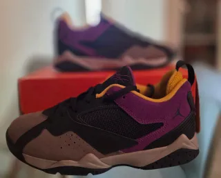 Zapatillas Jordan MVP 92 con una combinación de colores marrón y morado. - Diseño deportivo. - Detalles en color mostaza.