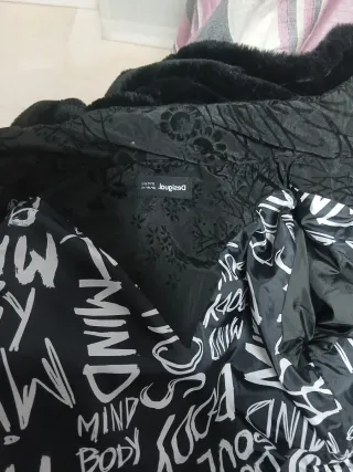 Chaqueta de la marca Desigual para niña. - Diseño con forro estampado. - Detalle de pelo en el cuello.