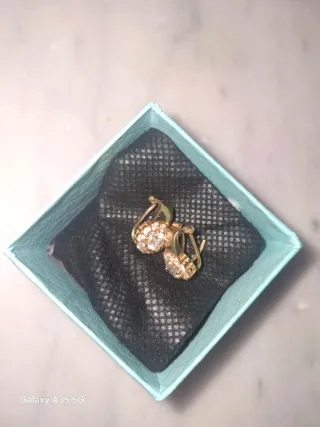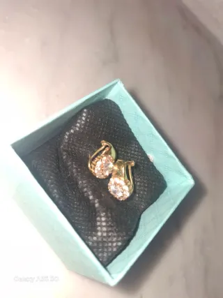 Elegantes pendientes bañados en oro, adornados con circonitas brillantes. - Diseño llamativo y sofisticado. - Cierre seguro y cómodo.