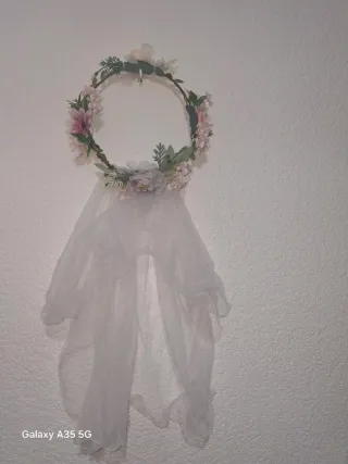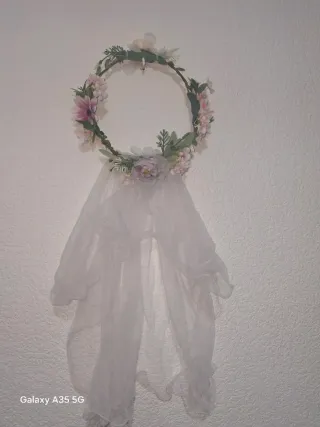 Precioso velo de novia adornado con flores. - Diseño floral delicado. - Tul ligero y vaporoso.
