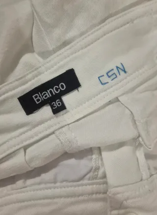 Talla S. Shorts vaqueros de color blanco, con un diseño moderno y cómodo. - Cintura con trabillas para cinturón. - Cierre de botón y cremallera. - Bolsillos delanteros y traseros. - Detalle de vuelta en el bajo. Perfecto estado. Poco uso. Visita mi perfil.