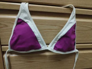 Camiseta deportiva de tirantes. - Tejido transpirable. - Doble capa: una azul exterior y una lila interior. Está practicamente nueva salvo por algún enganche que tiene tal como se muestra en la foto 3.