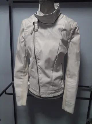 Chaqueta de pelo sintético con un tacto muy suave. Está como nueva sin estrenar, y creo que es una talla S/M ya que es muy grande para ser XS - Diseño corto y moderno. - Cierre con un botón. - Cuello amplio y envolvente.