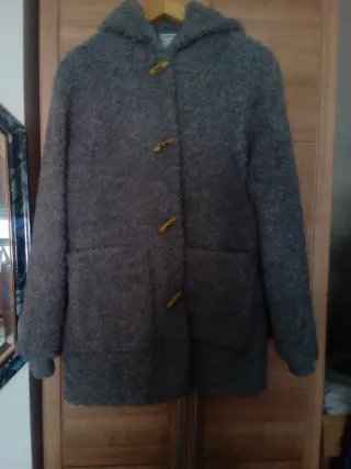 Chaquetón de la marca Pull and Bear de rizo en color gris. Es un abrigo con capucha y cierre de botones - Diseño con capucha. - Cierre de botones. - Bolsillos delanteros.