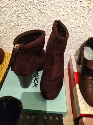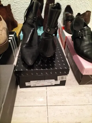Conjunto de calzado de piel en talla 41. - Botines marrones. - Zapatos de cordones beige. - Botines negros. - Zapatos negros. - Botines marrones.