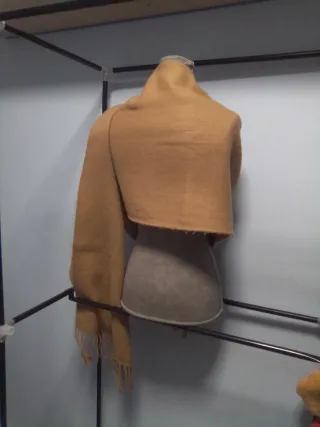 Chal con flecos en los extremos. Es suave y cálida, perfecta para complementar tu atuendo. - Material: Lana - Diseño: Chal con flecos - Color: Camel - Medidas: 260 x40 cm.