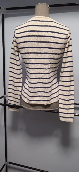 Jersey de manga larga con un diseño de rayas clásico. La textura es suave y agradable. - Diseño de rayas horizontales. - Cuello en V.