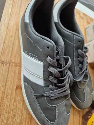 Zapatillas deportivas de la marca Nautica con un diseño moderno. - Combinación de colores gris y blanco. - Detalle de franjas blancas en el lateral. - Logo de Nautica bordado.